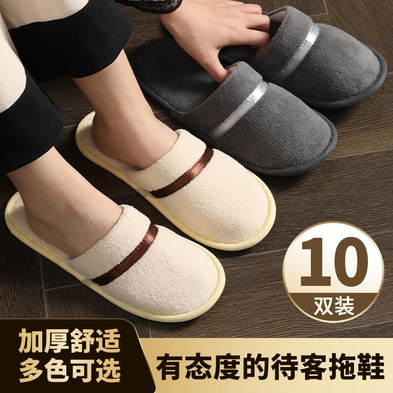 星级酒店宾馆一次性拖鞋待客拖鞋民宿会所加厚防滑珊瑚绒拖鞋10双