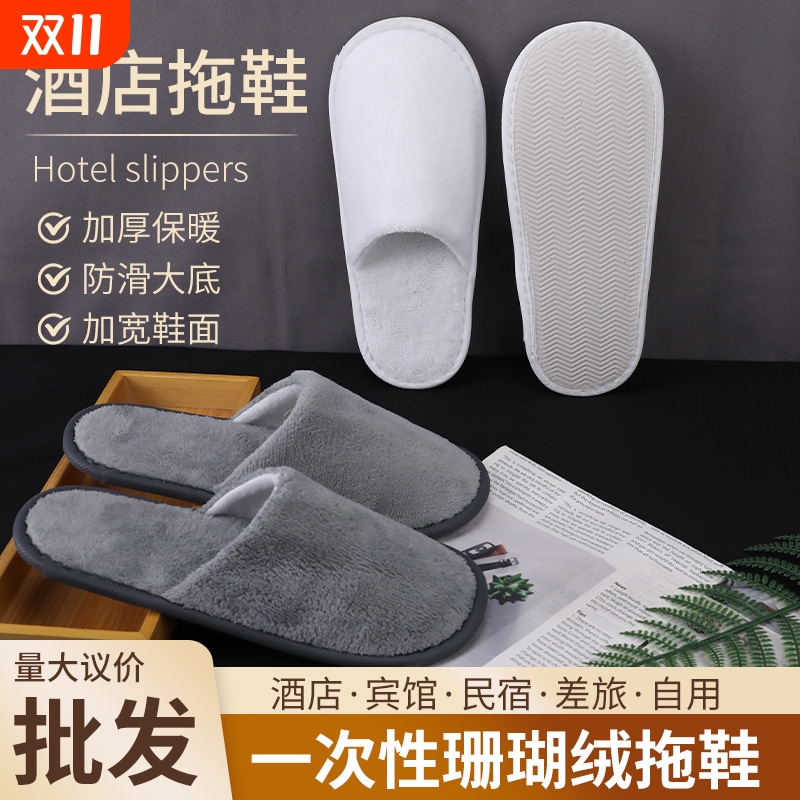 酒店一次性拖鞋珊瑚绒加厚防滑家用待客旅游高档宾馆民宿秋冬专用