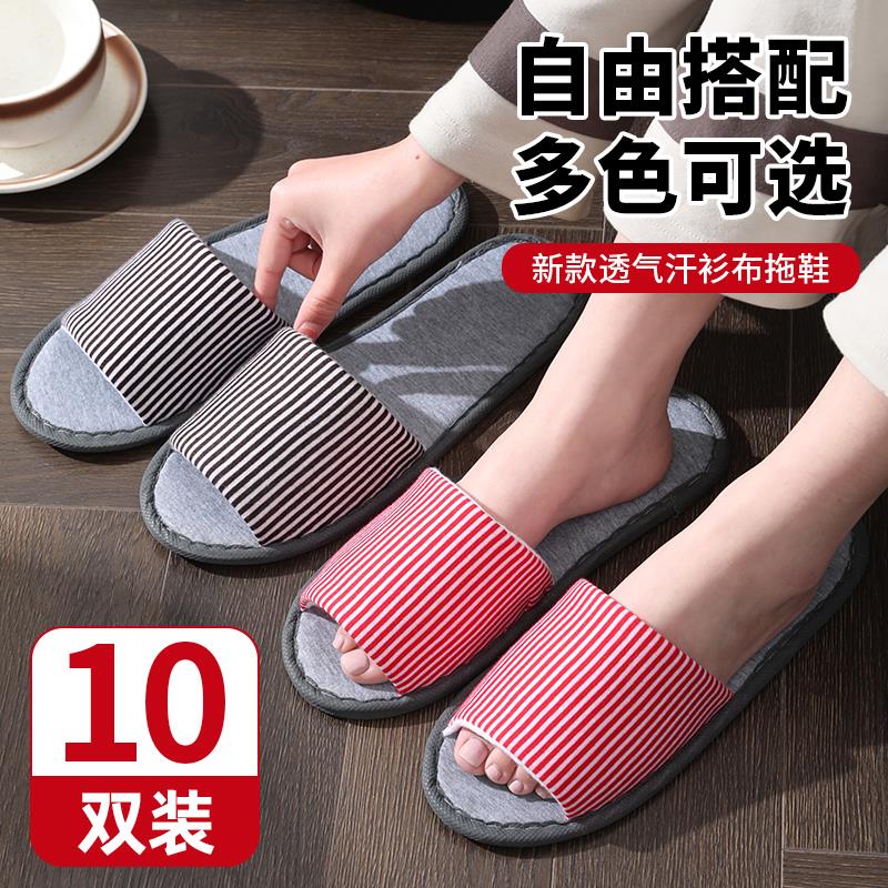 10双装一次性拖鞋待客拖鞋室内家用客人酒店旅行便携男女居家拖鞋