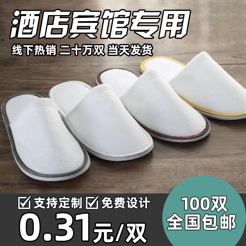 100双一次性拖鞋待客拖鞋加厚底防滑酒店宾馆民宿室内定制logo