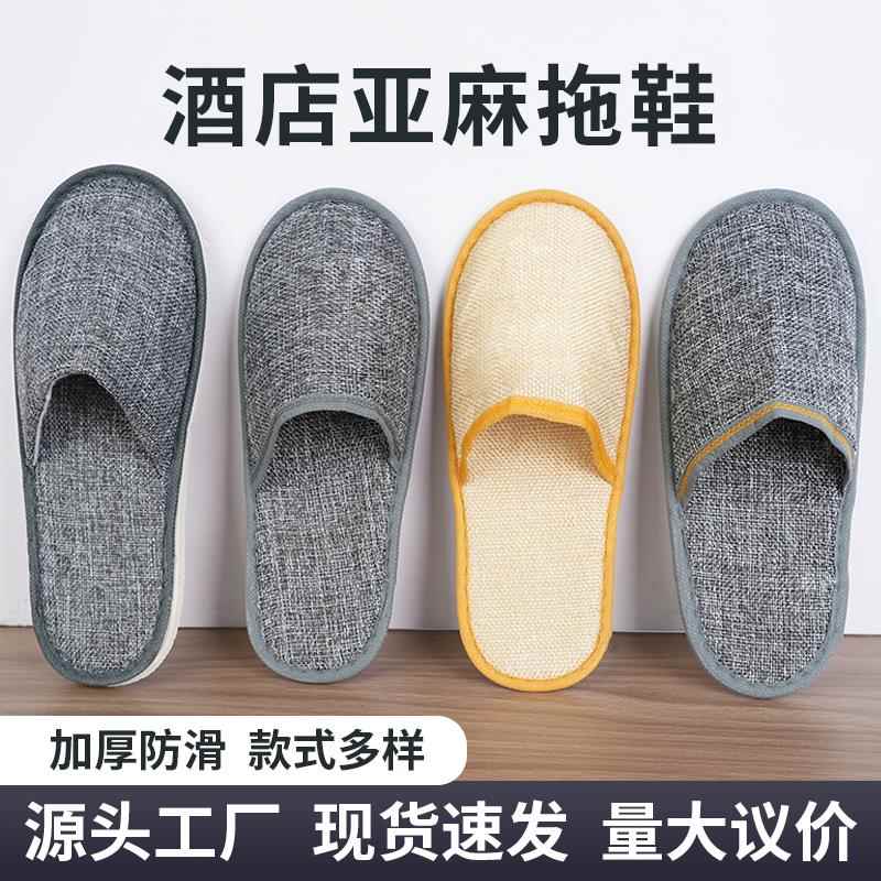 酒店一次性拖鞋待客拖鞋亚麻透气防滑加大加厚民宿专用室内可定制