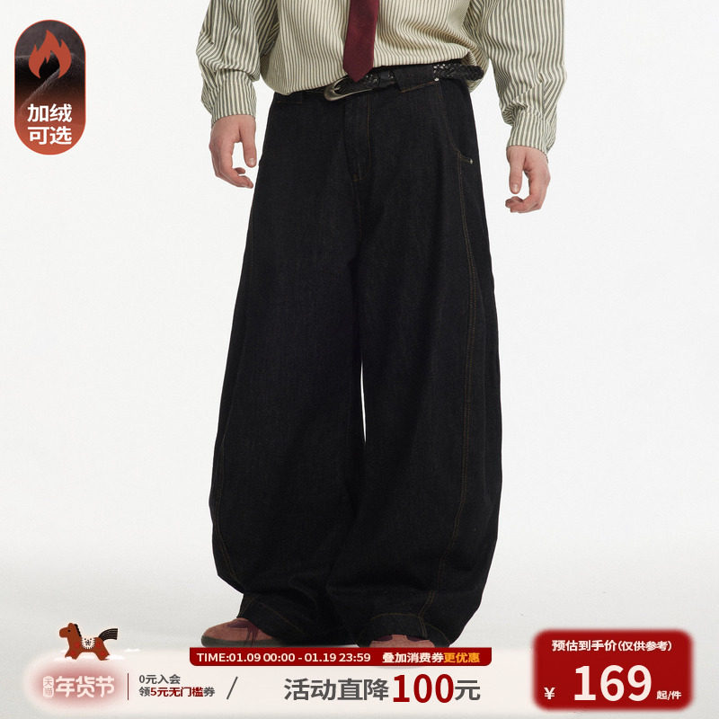 江南先生NewJNXS美式复古弯刀分割黑牛仔裤男女春秋潮牌阔腿长裤