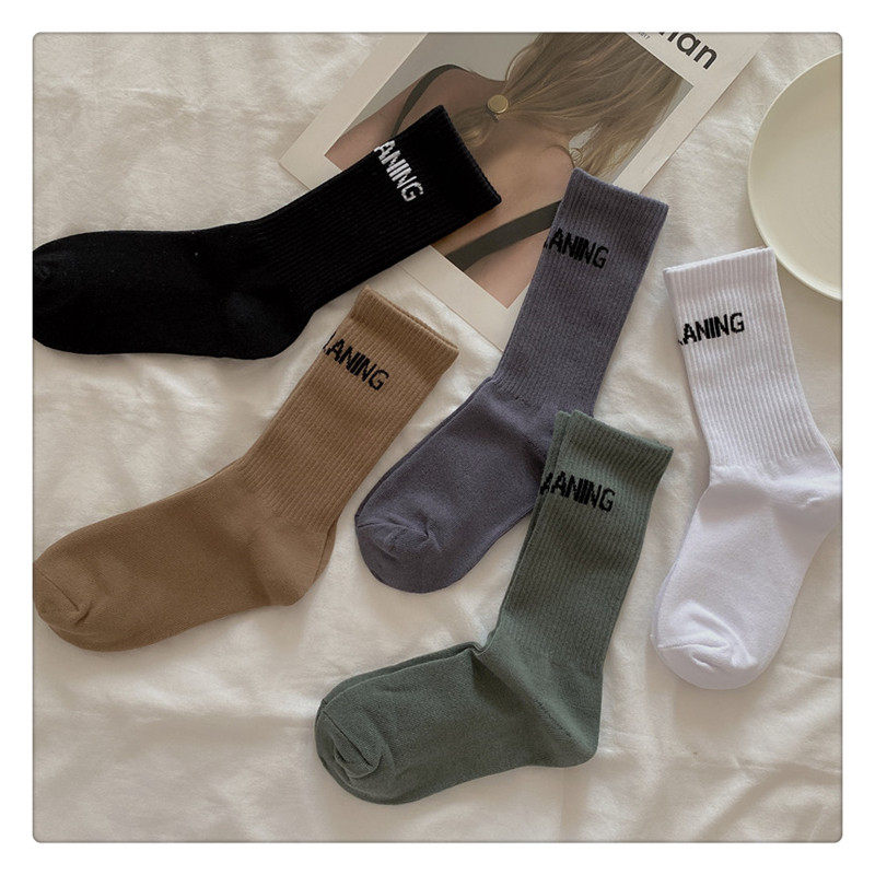 韩国ulzzang原宿港风简约字母潮牌纯色中筒棉袜子 男女百搭长袜子
