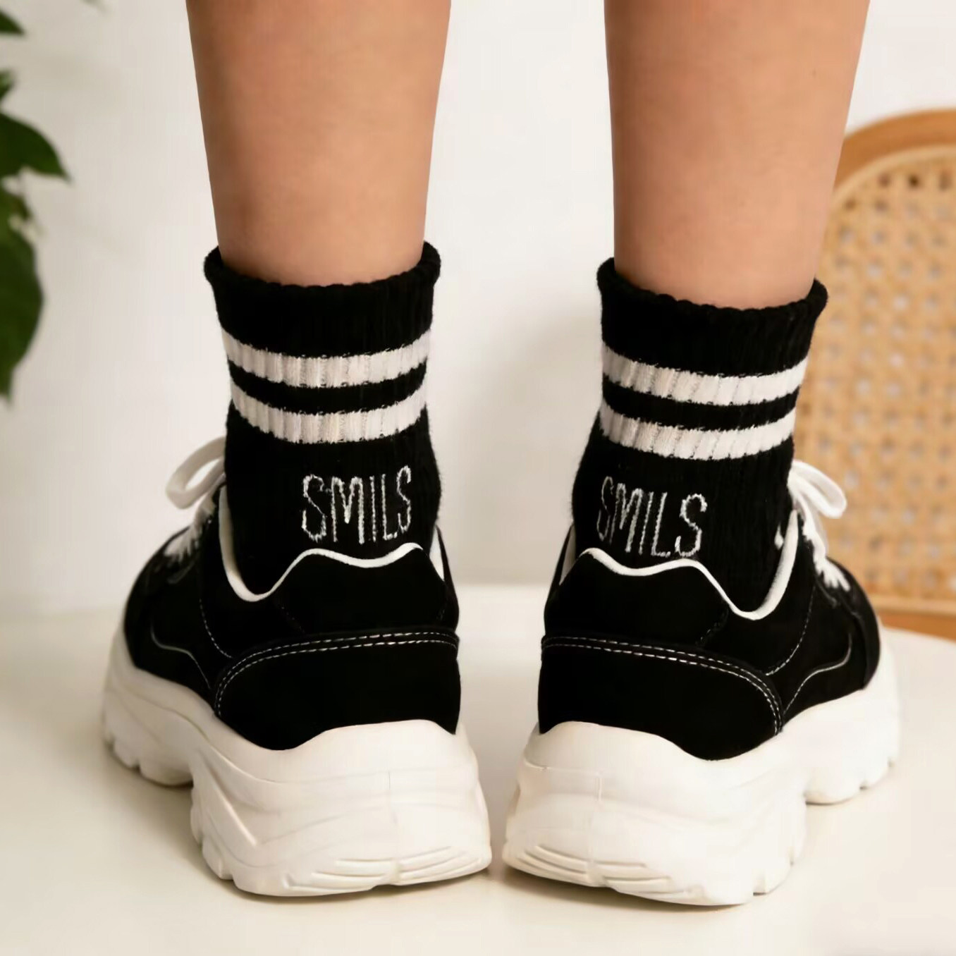 袜子男女潮中筒韩版ulzzang二杠刺绣smile棉原宿运动风学生袜