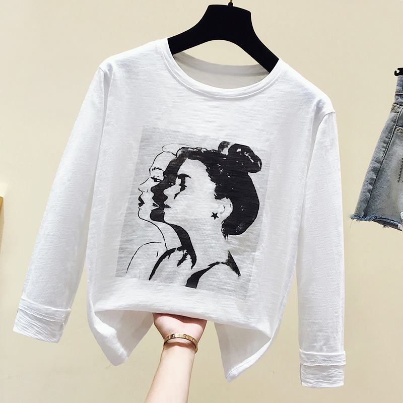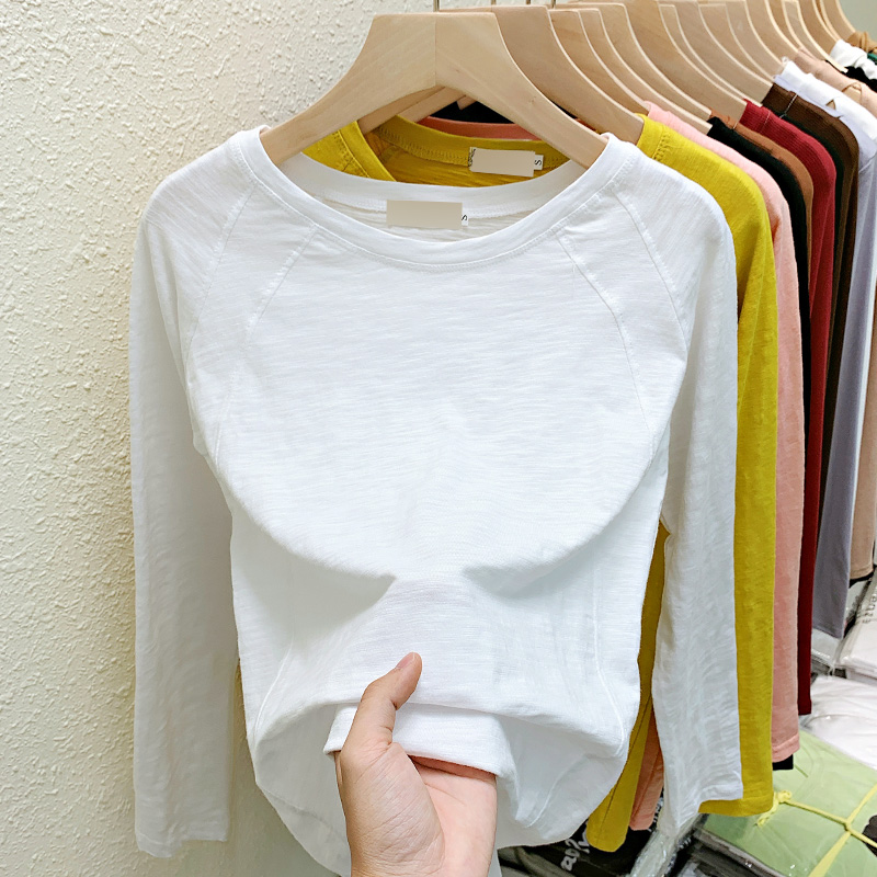 早秋新款韩版纯棉U领长袖竹节棉T恤女装宽松显瘦百搭套头上衣打底