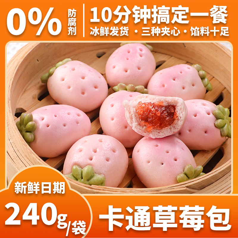 芃宝儿童搭配婴幼儿辅食草莓包子早餐半成品卡通包子馒头速冻面点