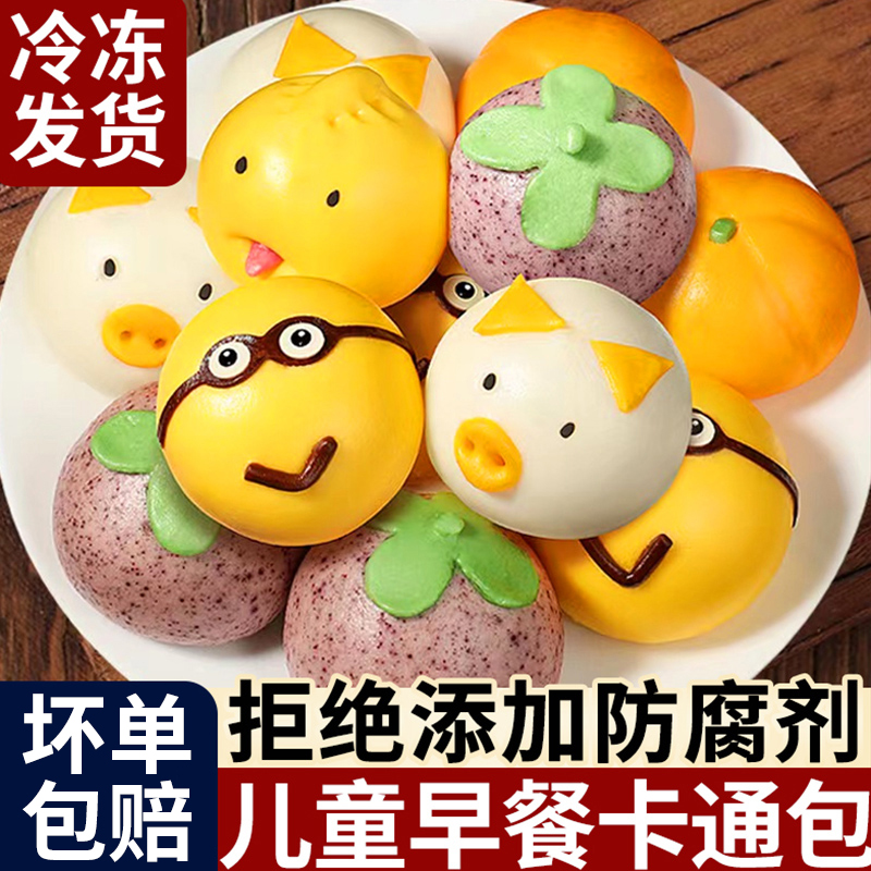 卡通包子馒头儿童早餐半成品宝宝奶黄包猪猪包豆沙特色无添加果蔬