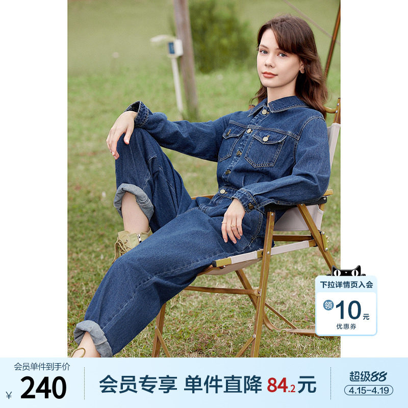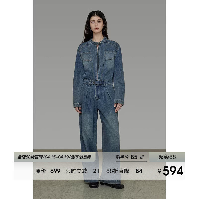 UNSPOKEN复古高级感牛仔连体衣女2026年春季新款宽松百搭简约法式