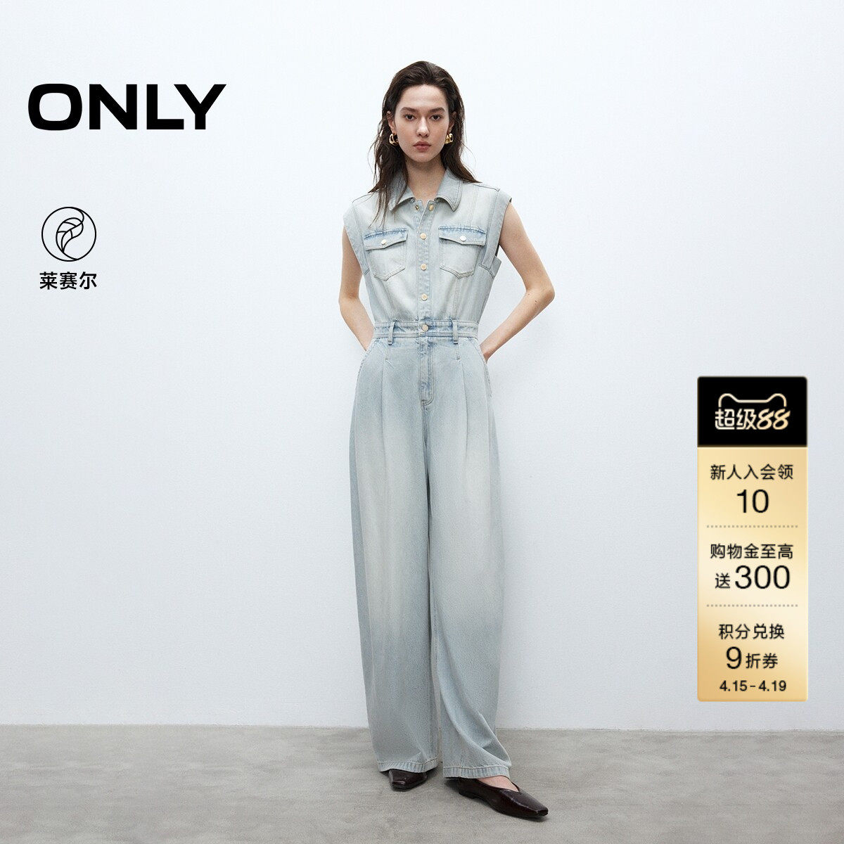 ONLY春季潮流莱赛尔复古水洗宽松显瘦阔腿长裤连体裤牛仔裤女