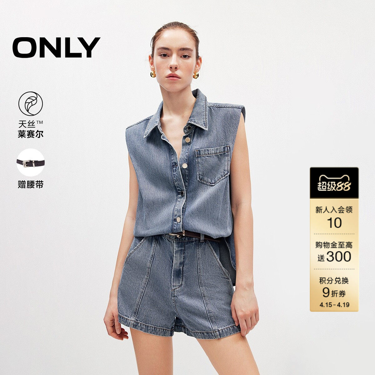 ONLY2026春季新款天丝加宽垫肩设计无袖衬衫连体短裤牛仔裤女