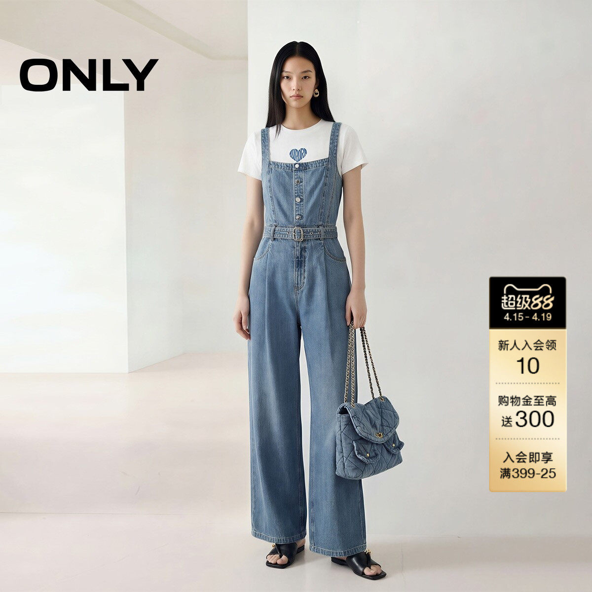 ONLY2026夏季新款复古高腰可拆腰带显瘦背带连体裤直筒裤牛仔裤女