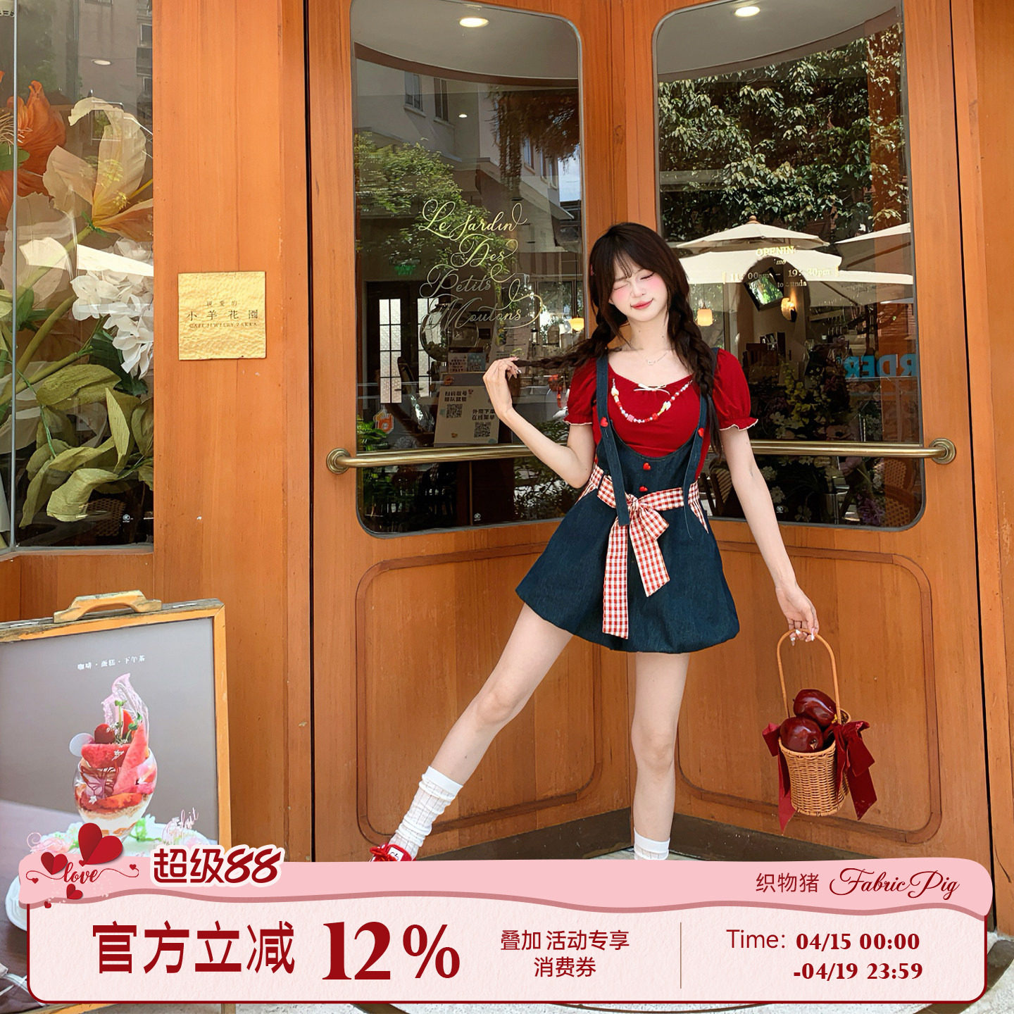 织物猪 红莓杏语 甜美少女风牛仔蓝连体裤女夏可爱减龄背带裤短裤
