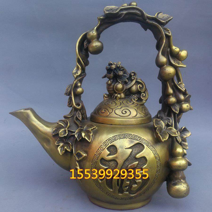 风水铜器纯铜水壶貔貅葫芦福字铜茶壶酒壶百福葫芦家居装饰品摆件