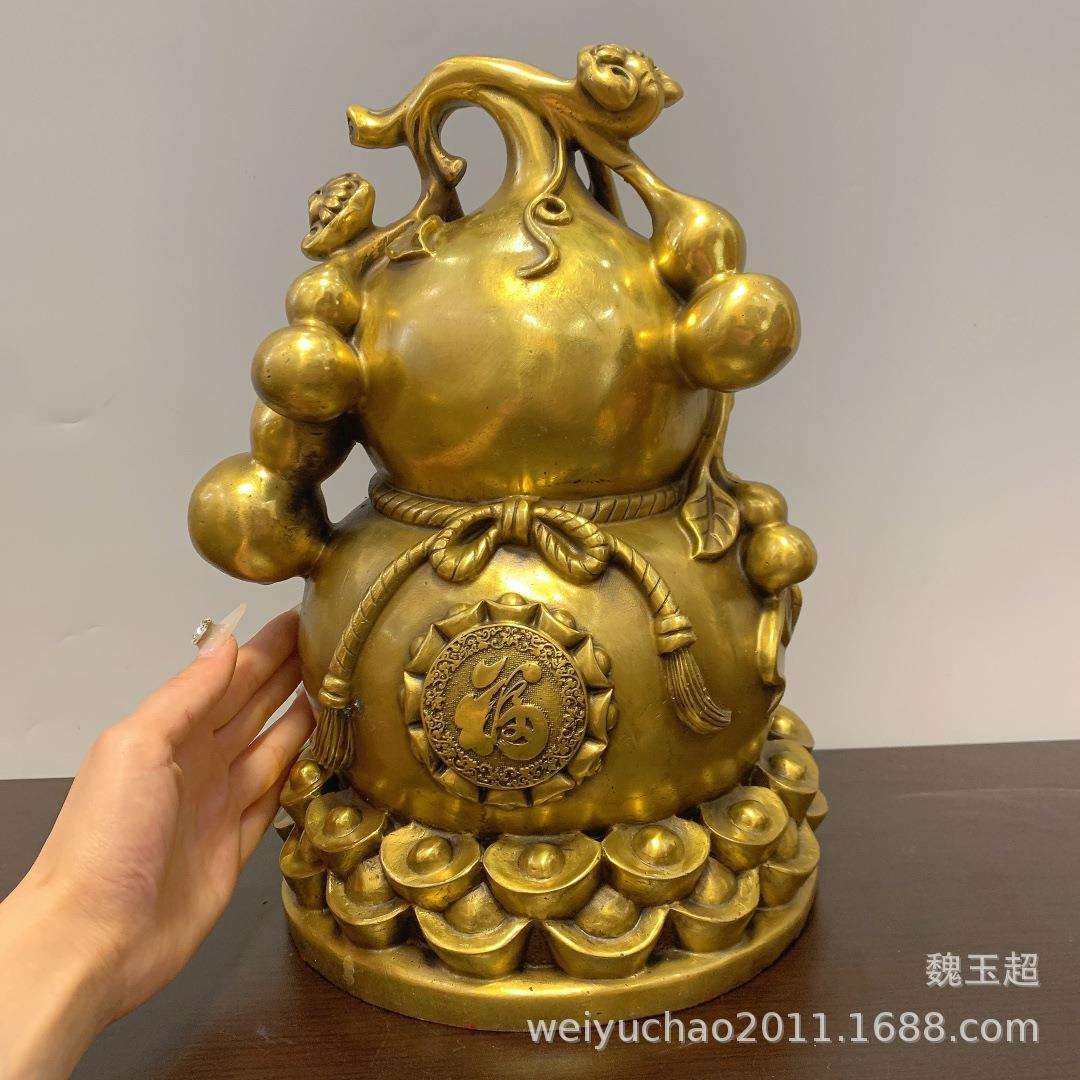 纯铜葫芦摆件开口光面超大号黄铜葫芦招财挂件客厅办公室摆设装饰