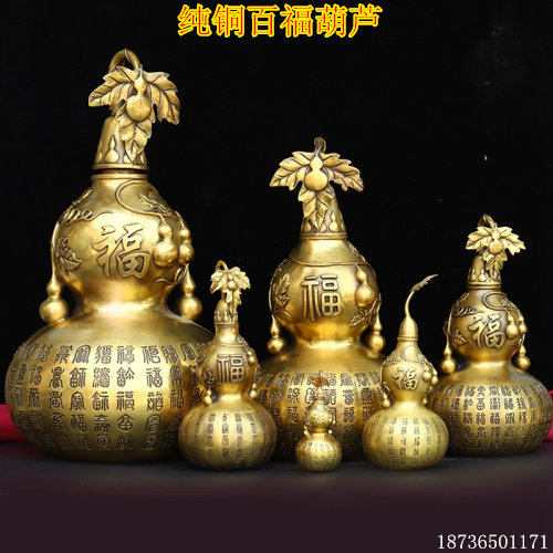 古董文玩纯铜紫铜百福葫芦摆件客厅招财八卦风水创意居家送礼摆设