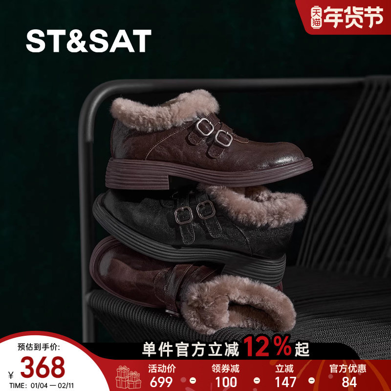 星期六平底加绒乐福鞋女2025冬季新款毛毛鞋复古英伦风小皮鞋棉鞋