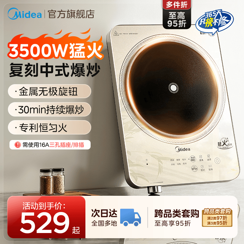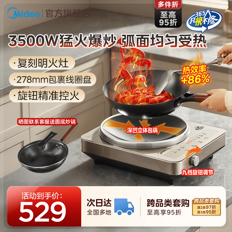 美的3500W大功率旋钮电磁炉家用官方正品爆炒火锅全套新品电磁灶