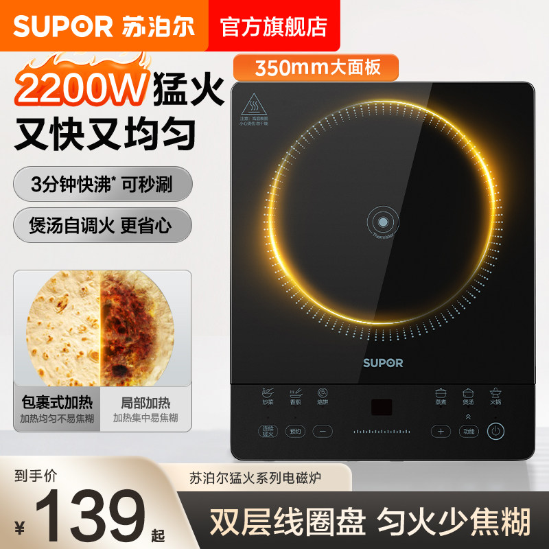 苏泊尔电磁炉家用智能多功能炒菜火锅一体电磁灶电池炉官方正品新