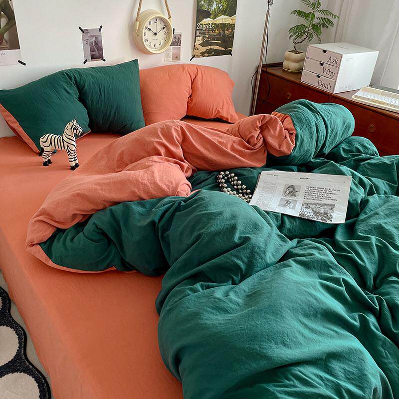 ins水洗棉四件套纯棉全棉1.8床上用品被罩床单人学生宿舍三件套