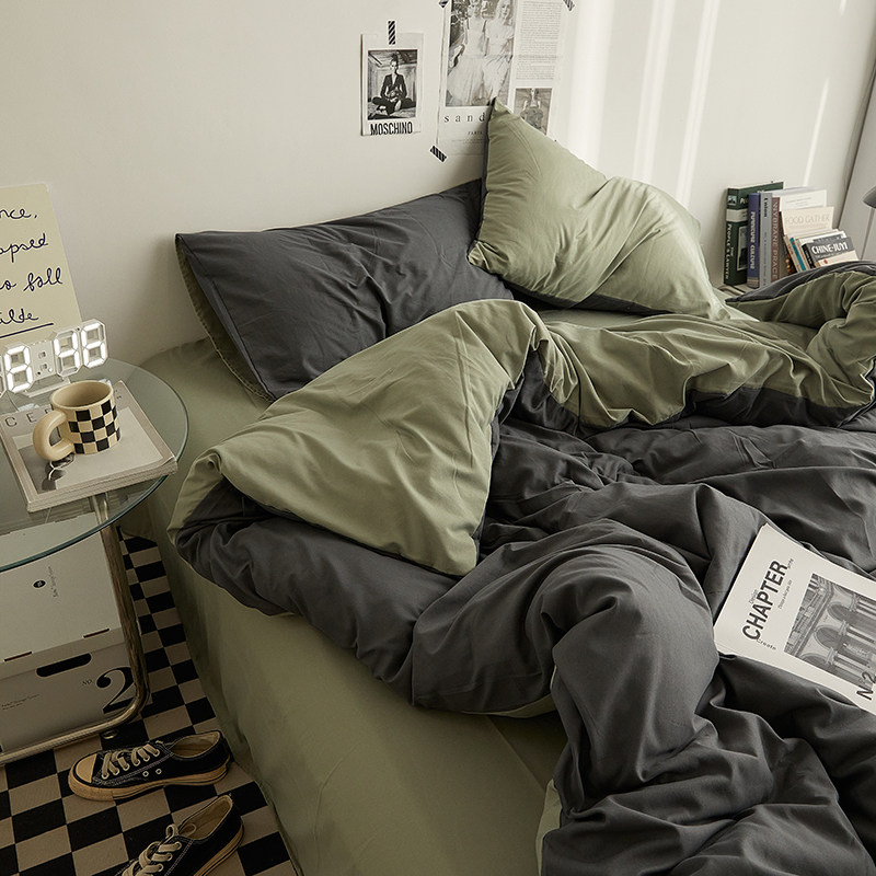 新款ins水洗棉四件套纯色双拼被套罩床笠单人宿舍三件套床上简约4
