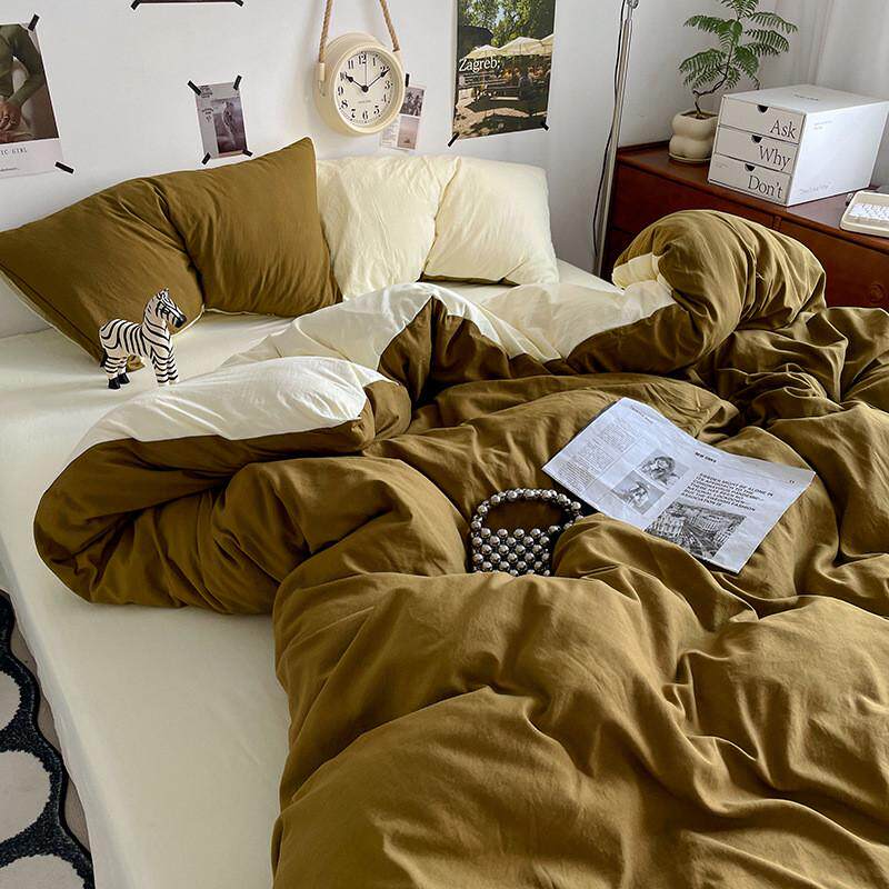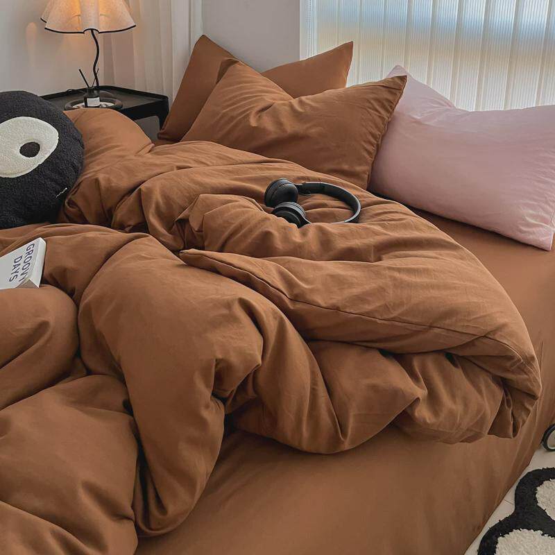 摩卡慕斯棕简约纯色少女粉ins水洗棉四件套床单学生三件套床笠1.8
