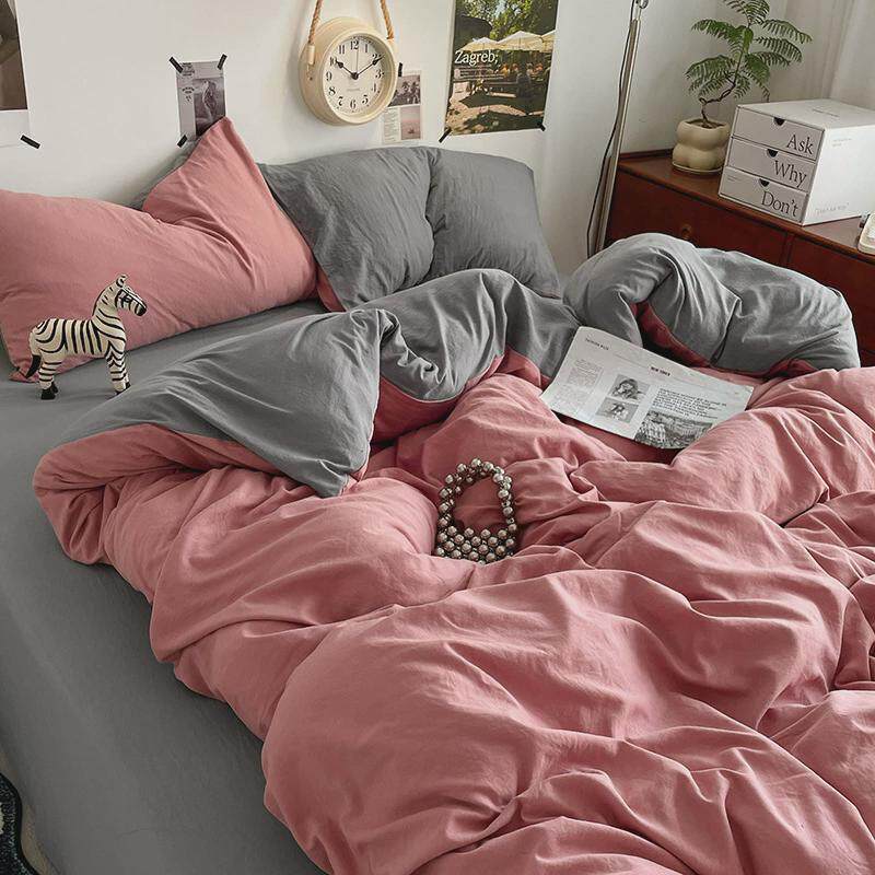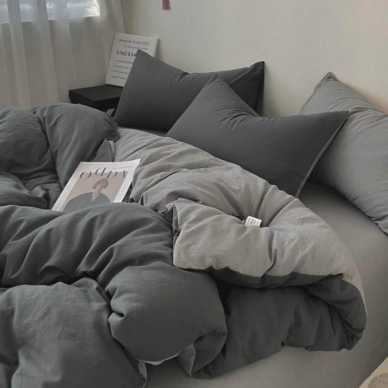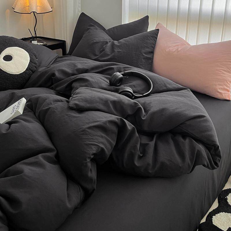 ins水洗棉四件套秋季纯色床单被罩床上用品三件套家纺南通被套4