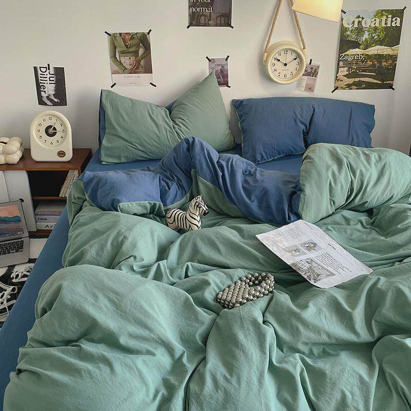 北欧风ins水洗棉四件套简约床单被套床笠学生宿舍三件套床上用品