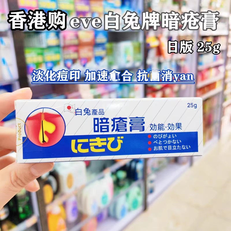 日本EVE白兔暗疮膏祛痘膏消炎杀菌去痘坑痘印闭口粉刺痤疮药膏