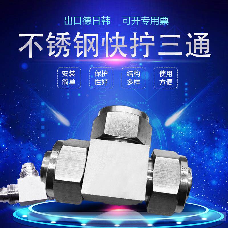 不锈钢304快拧三通6.35PU软管变径四氟管快速接头气管宝塔头锁母