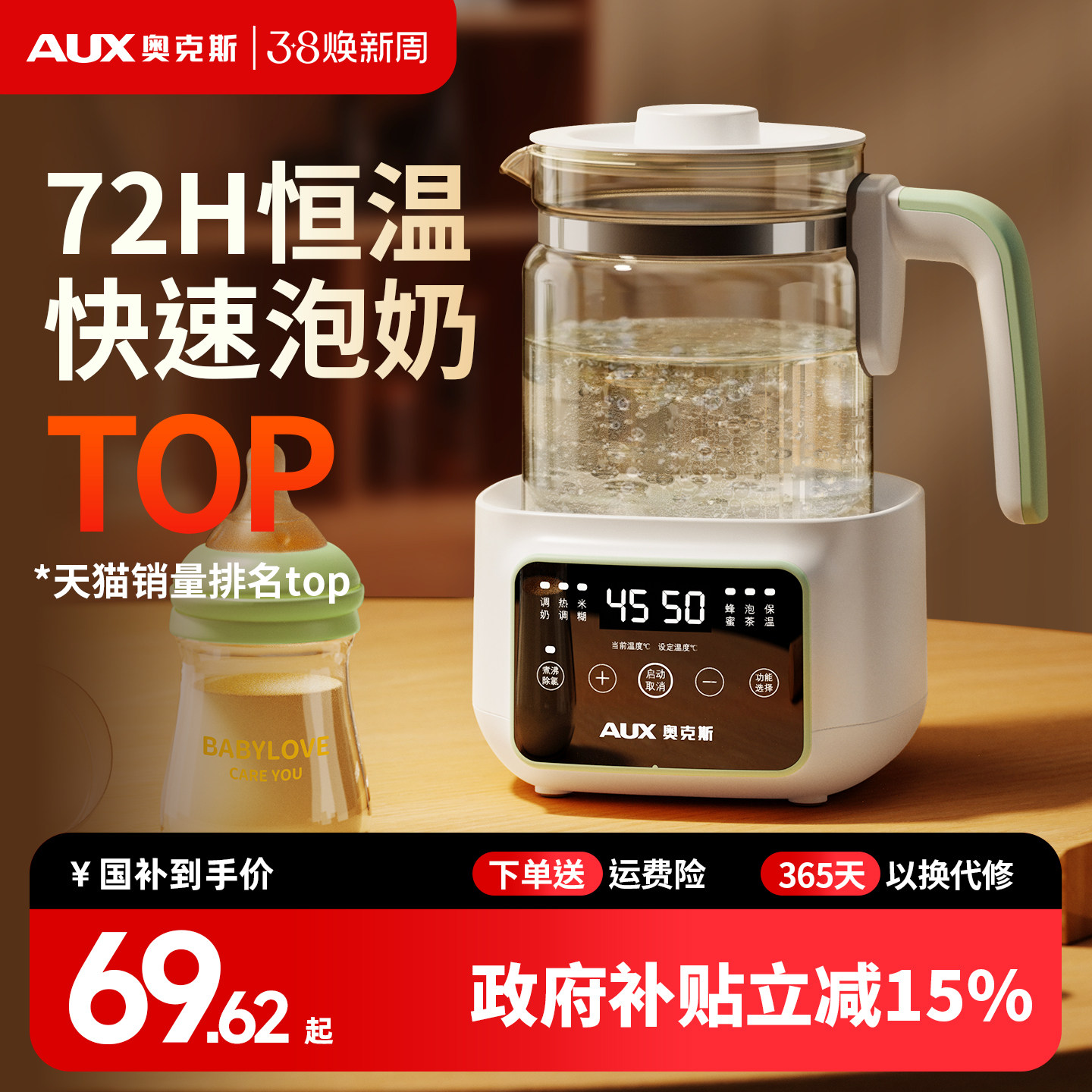 AUX奥克斯恒温热水壶婴儿专用冲奶家用温奶泡奶机烧水调奶器保温