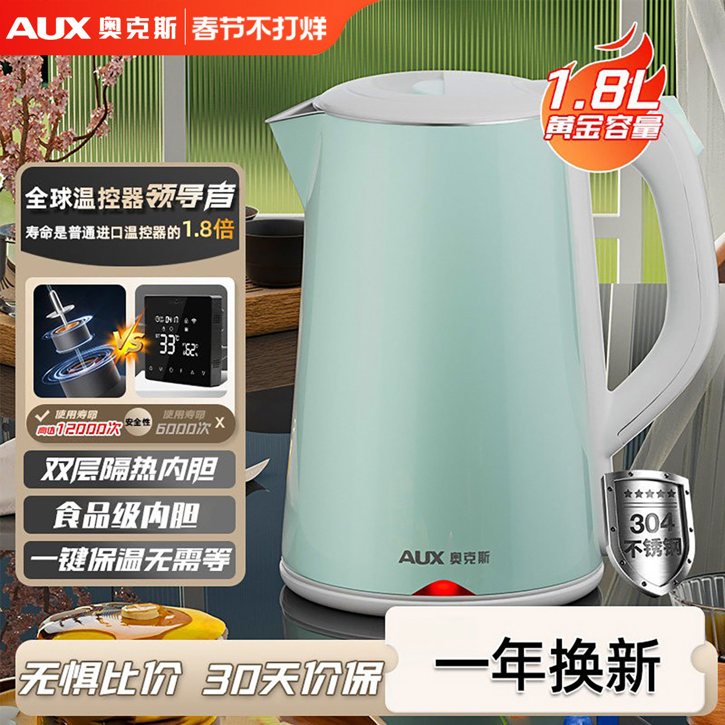 AUX奥克斯烧水壶2025新款家用热水壶保温泡茶电热水壶恒温煮水壶