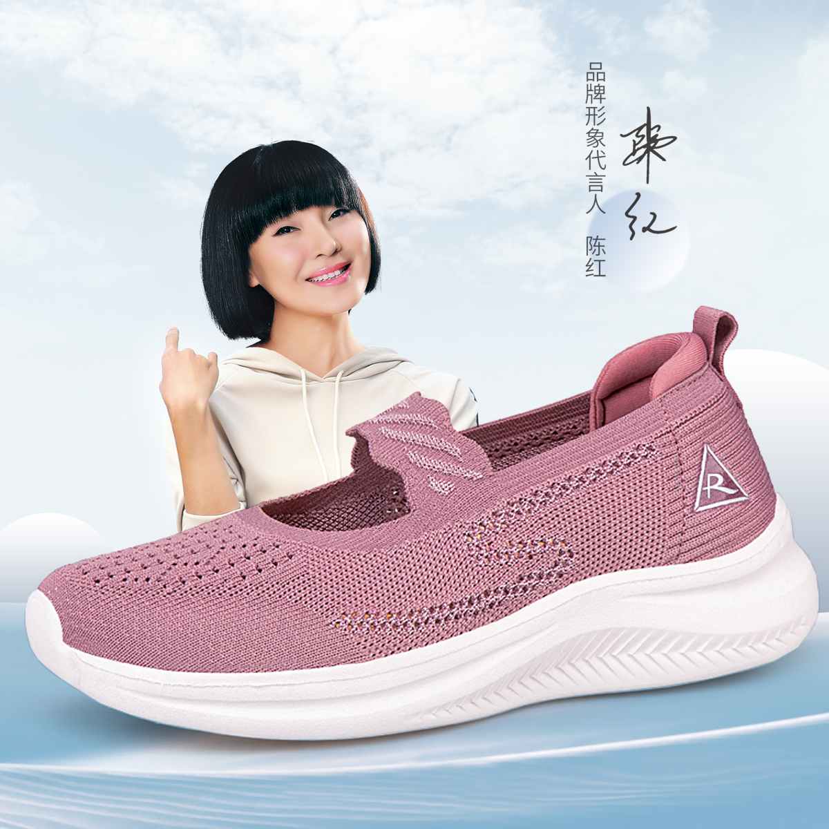 双星女鞋运动鞋超轻夏季透气网面软底妈妈老人休闲鞋一脚蹬店旗舰