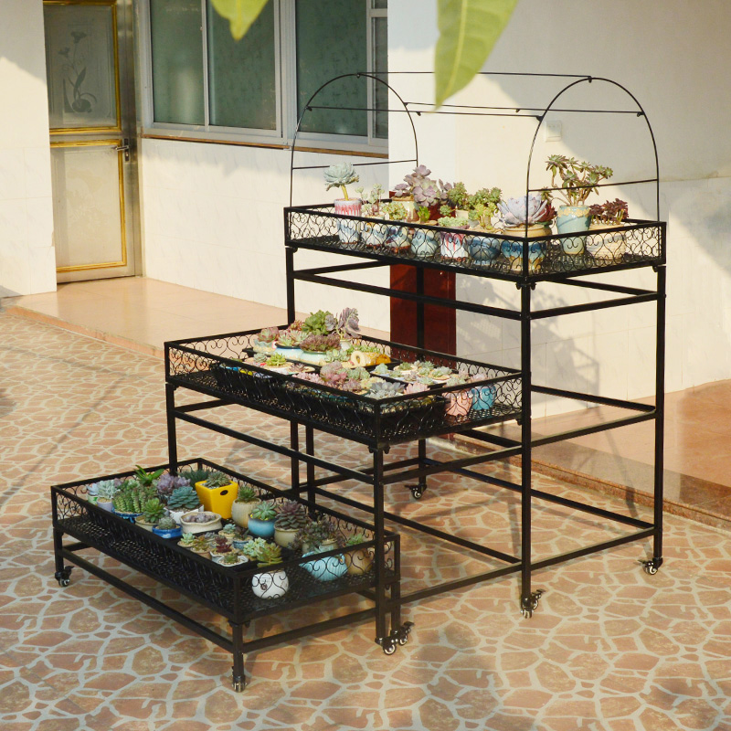 阳台多肉花架多层铁艺室户外带轮可移动落地置物架子露养防雨遮阳