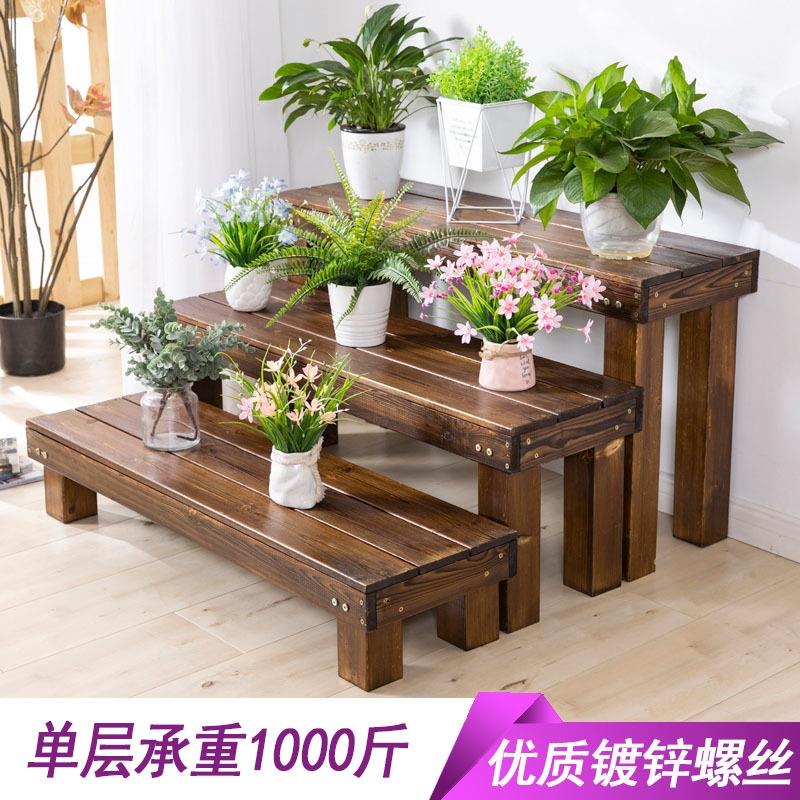 实木多肉花架多层阳台室外防腐木花架子庭院户外单层矮花凳花盆架