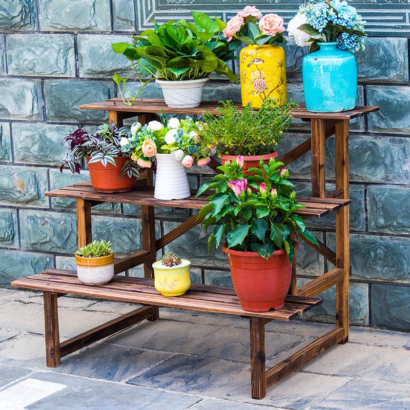 实木多肉花架多层阳台室外防腐木花架子庭院户外阶梯式花凳花盆架