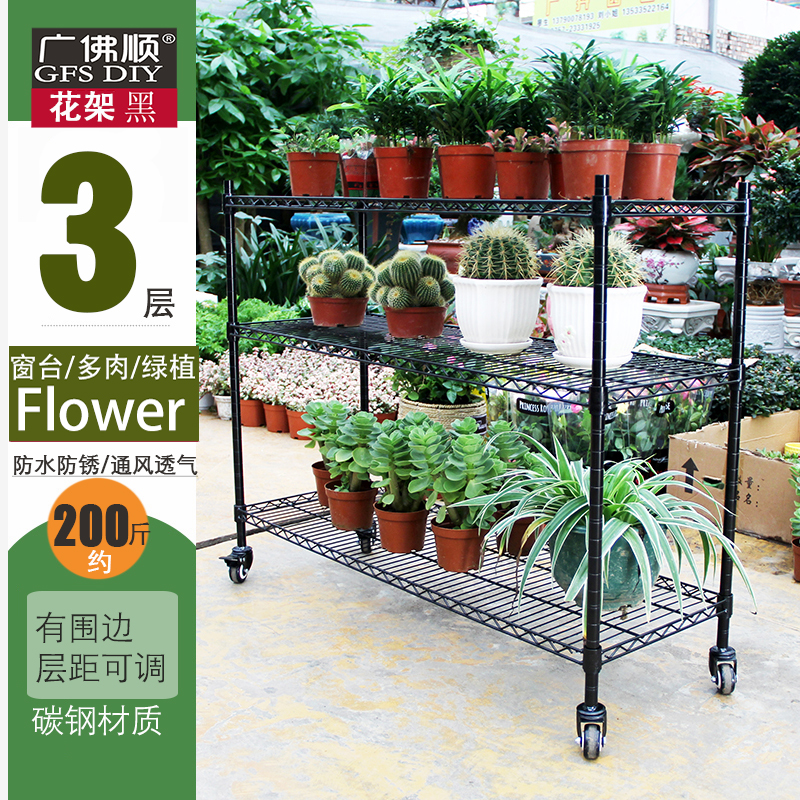 多肉花架多层置物架阳台架子落地铁艺移动不锈钢户外3层轮子移动