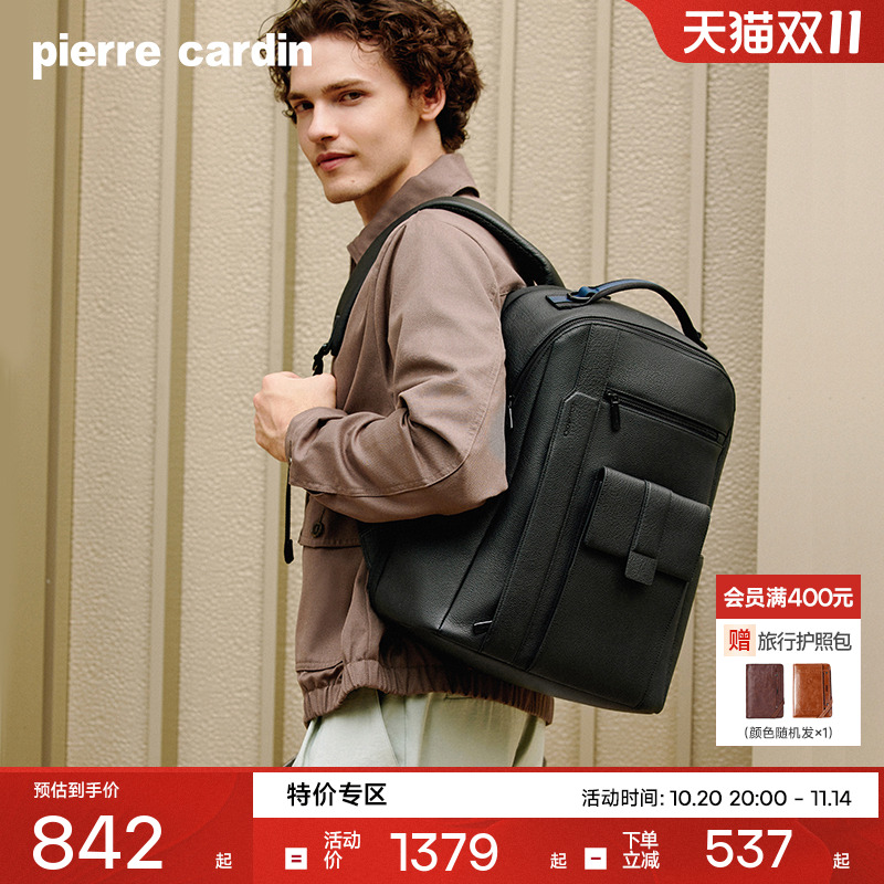 【真皮】皮尔卡丹双肩包休闲通勤男士大容量电脑背包时尚牛皮书包