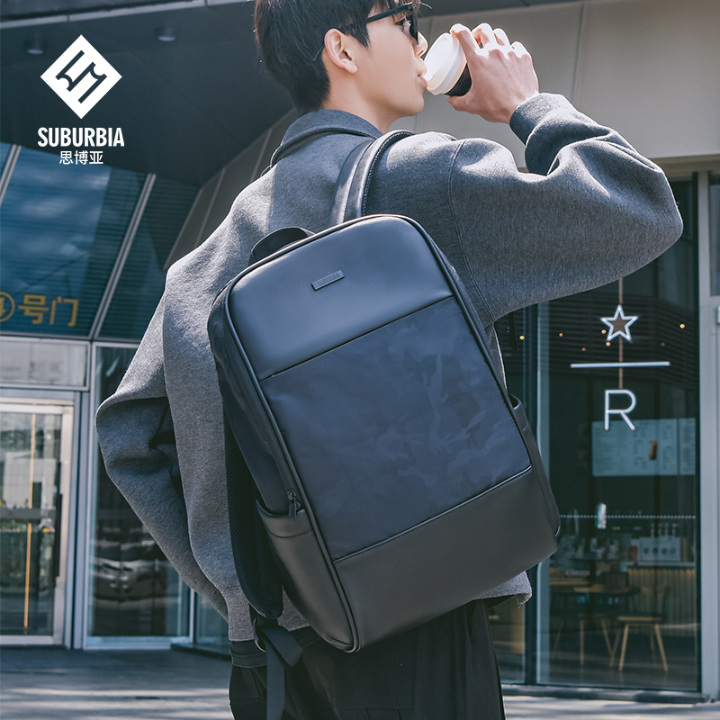 思博亚电脑背包男双肩包商务出差旅行上班通勤大容量大学生皮书包