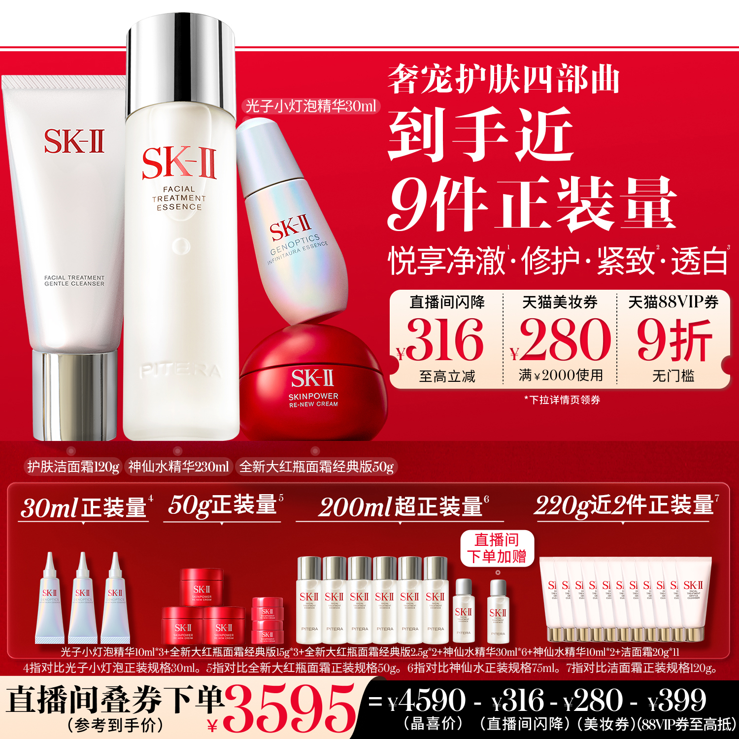 【自营】SK-II随行护肤品套装75ml神仙水大红瓶面霜小灯泡精华sk2