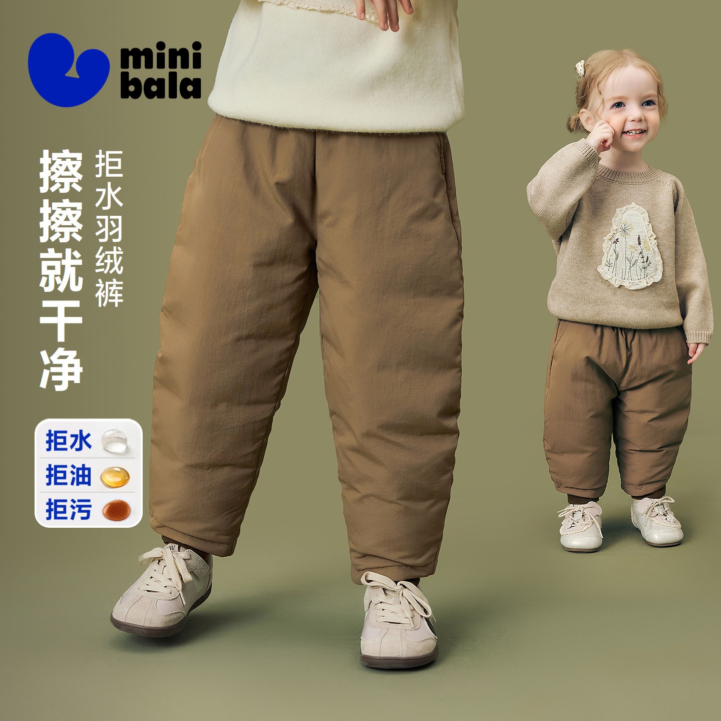[迷你真心绒]迷你巴拉男女童宝宝三防拒水羽绒裤冬假两件脚口裤子