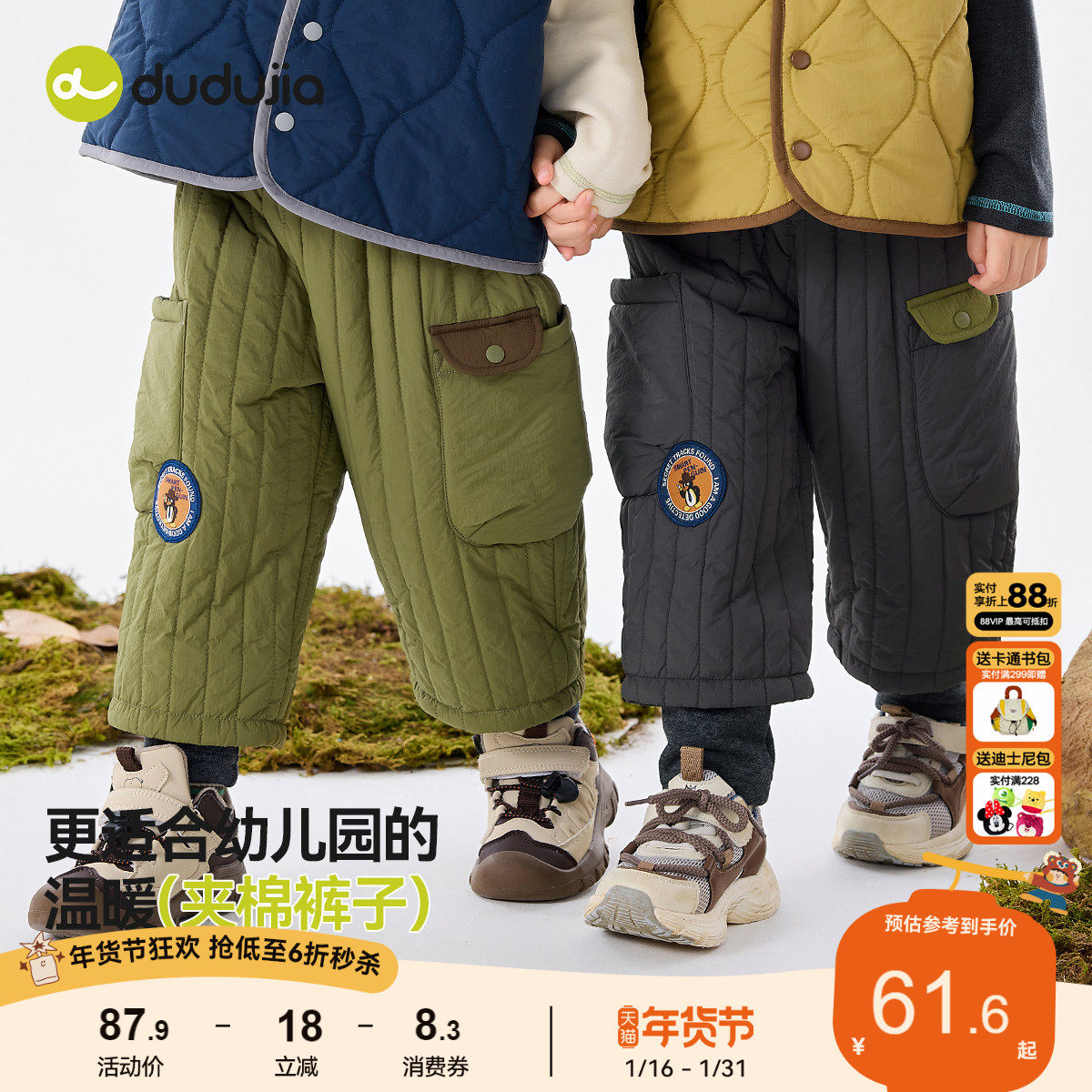 嘟嘟家儿童棉裤冬季男童裤子加绒女童长裤假两件宝宝休闲裤冬款潮