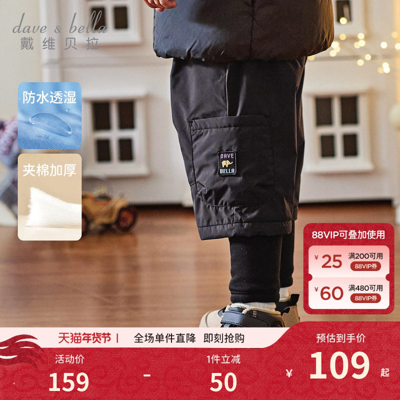 戴维贝拉2026冬装新款男童防水棉裤宝宝假两件裤子儿童A类长裤