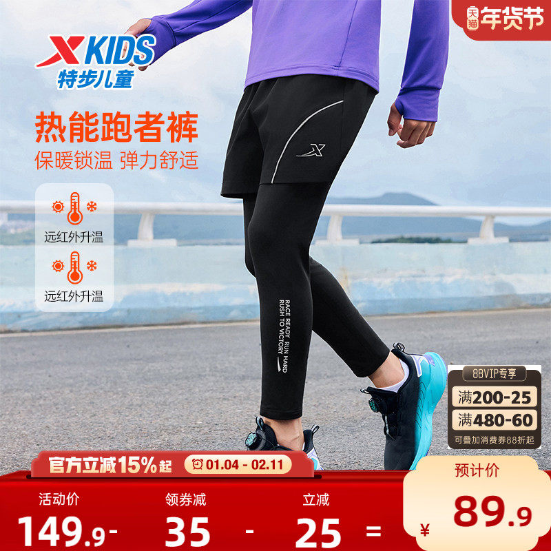 盾甲|特步童装男童假两件运动裤儿童防泼水裤子秋冬款大童热能裤