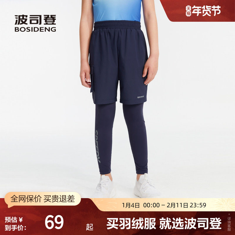 波司登奥莱男童休闲裤子时尚帅气假两件打底裤运动裤反光字母印花