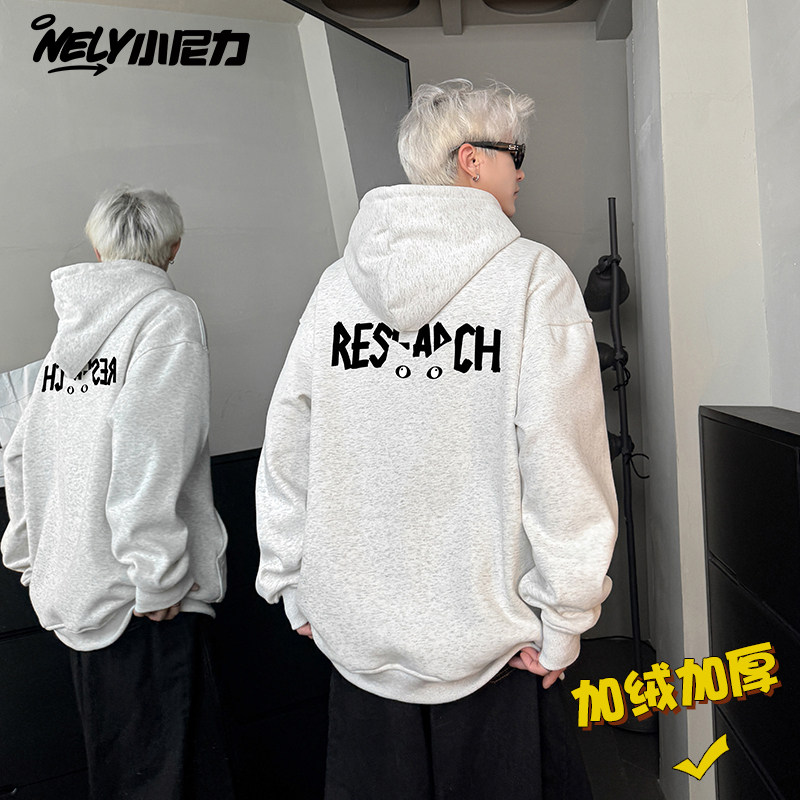 连帽卫衣男加绒加厚保暖宽松学生带帽男士套头潮牌ins羊羔绒外套