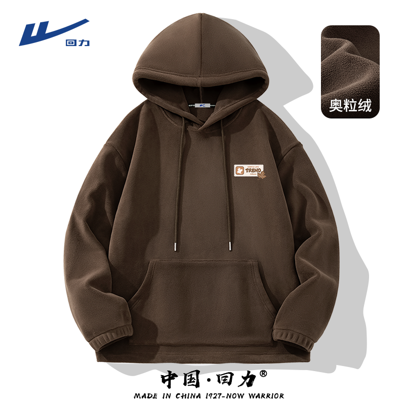 回力连帽卫衣男2025新款冬季奥粒绒潮牌上衣加绒加厚带帽子外套Y
