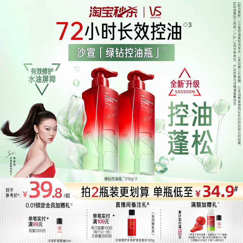 【下拉享淘金币优惠】沙宣钻石瓶控油蓬松水光抑屑洗发水护发精油