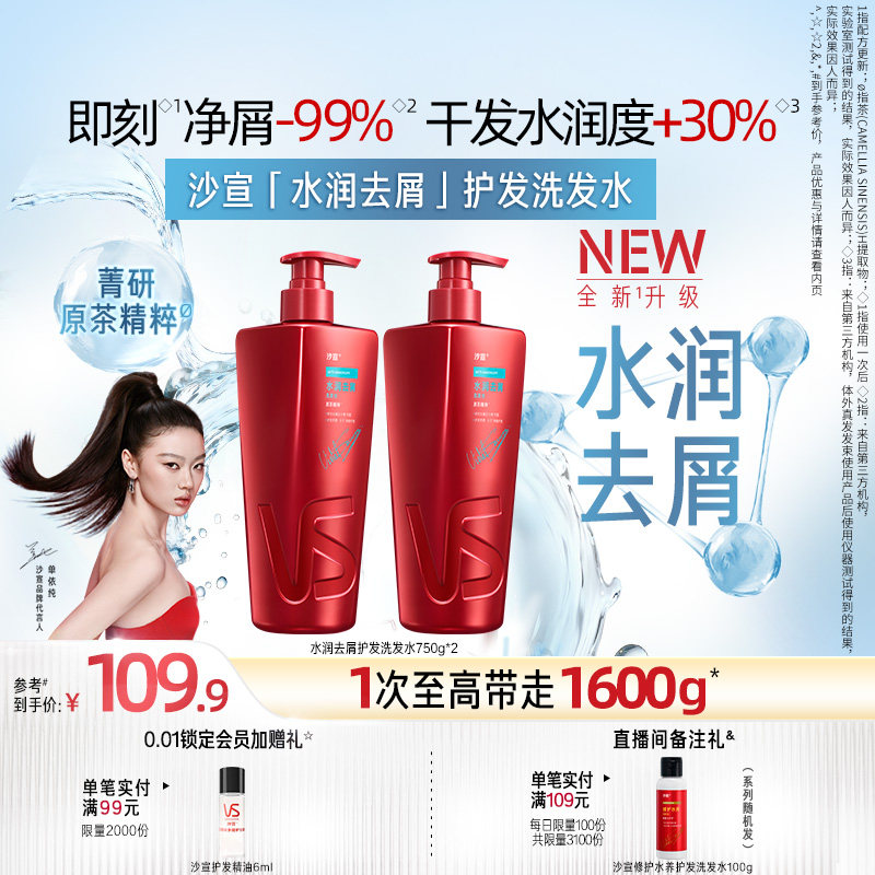 VS沙宣水润去屑洗发水干性发质修护枯燥断减缓出油持久自然留香