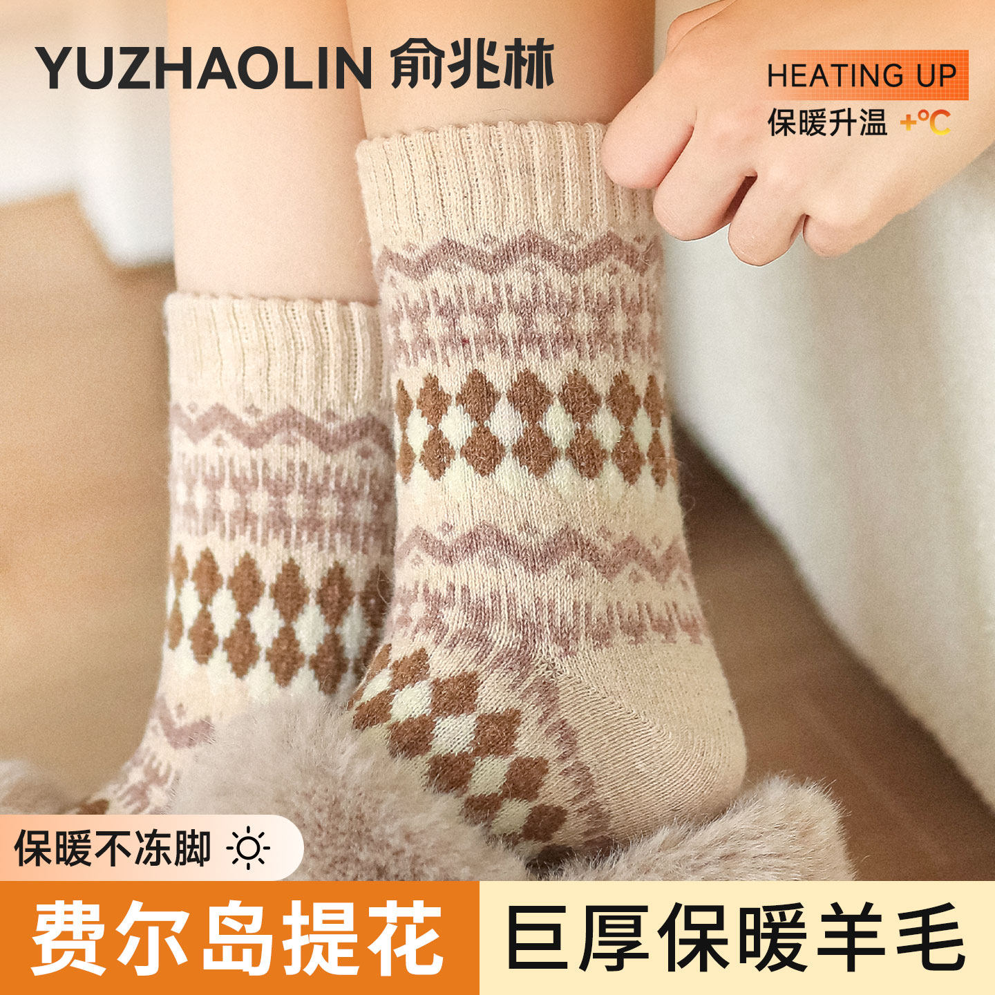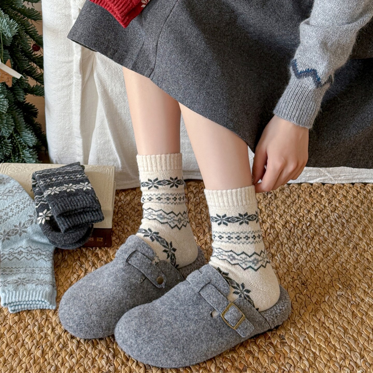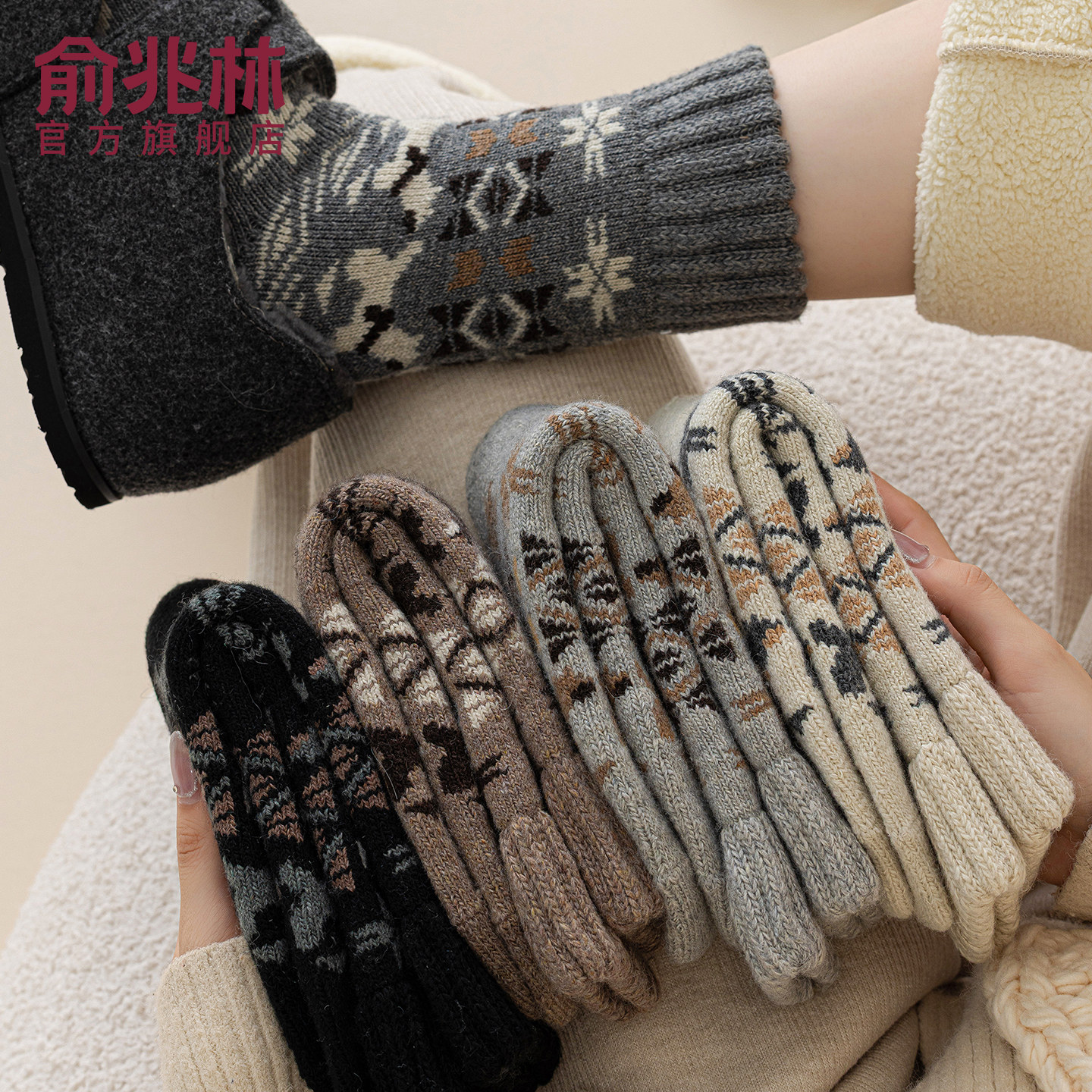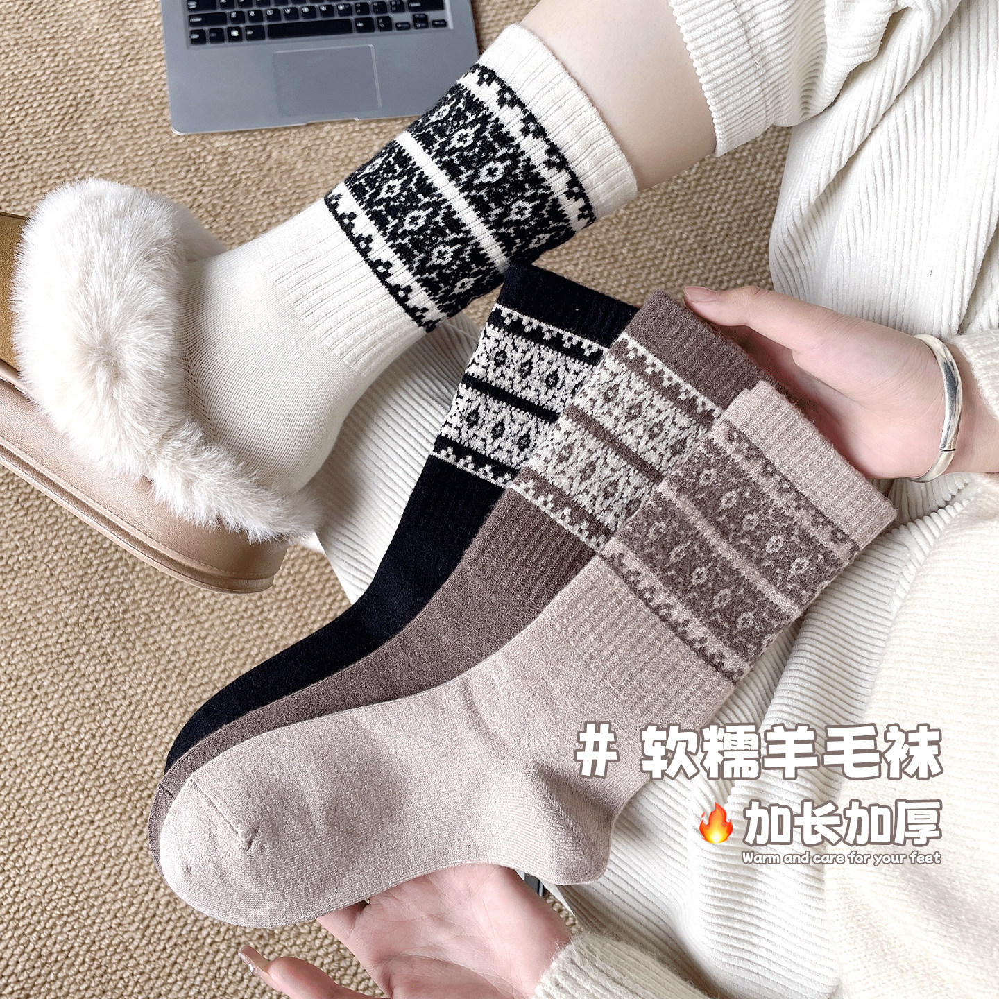 费尔岛袜子女冬季保暖加厚羊毛袜女复古韩系中筒袜秋季长筒堆堆袜
