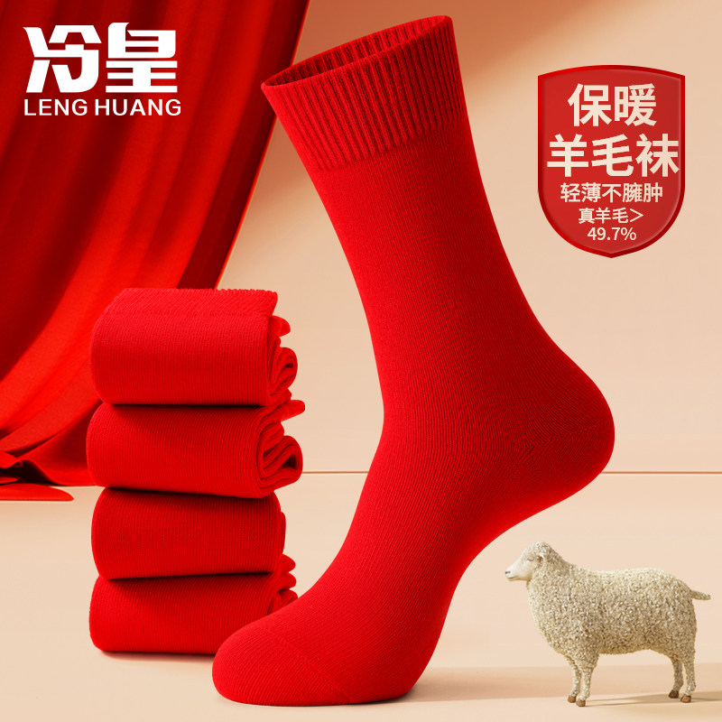 红袜子男款长筒冬季加厚羊毛袜本命年马年新年礼物大红色女士长袜